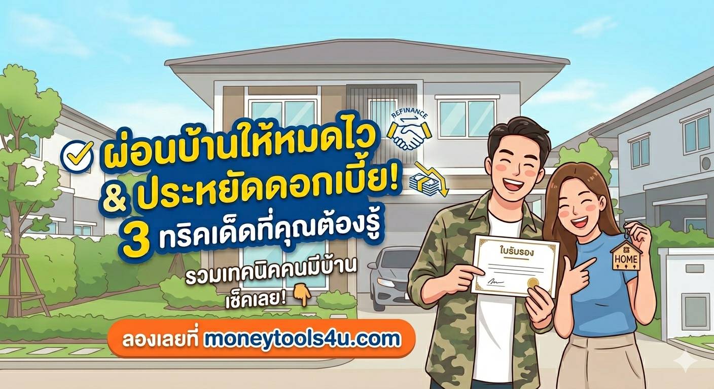| โปะเพิ่ม 1,000 บาท/เดือน | ~26 ปี | ~1,572,000 บาท | ~293,000 บาท |